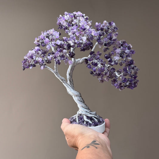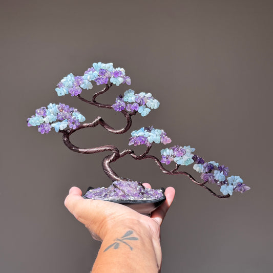 Amethyst, Prehnite and Opal Bonsai Crystal Tree