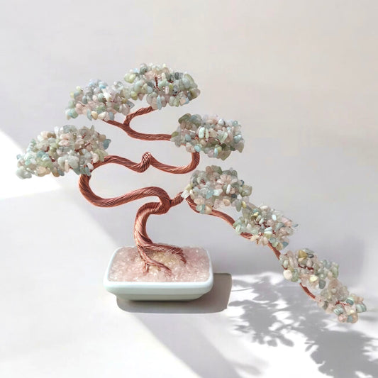 Prehnite, Jade, Strawberry Quartz, Rose Quartz Willow Crystal Tree
