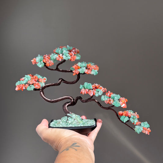 Green Aventurine-Carnelian Bonsai Crystal Tree