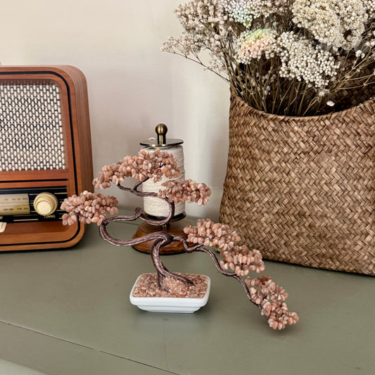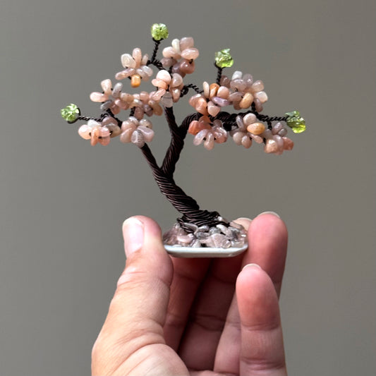 Mini Peach Moonstone Bonsai Crystal Tree