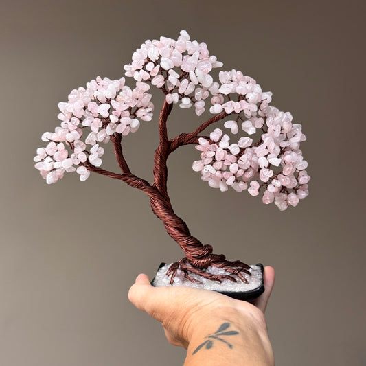 Large Rose Quartz Pagoda Bonsai Crystal Tree
