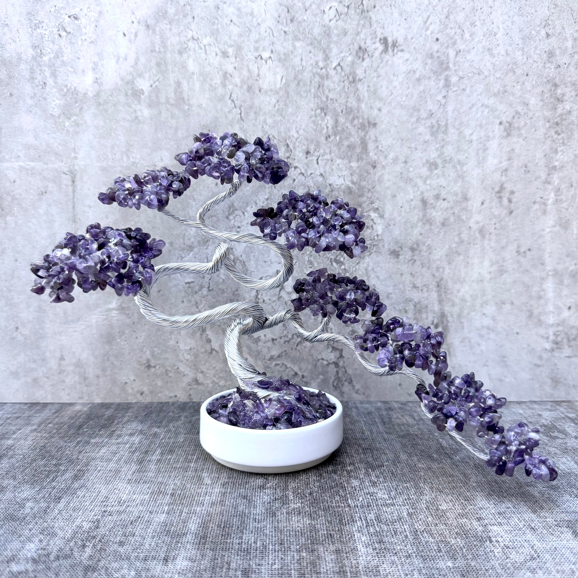 The trees made of different gemstones are a popular way of giving rise to different aspects of life. Being highly energizing, they are a powerful and at the same time a very beautiful tool for creating harmony at home.The Amethyst is a universal healer with delicate, yet powerful energy. It’s useful when the mind is exhausted. It improves the nervous system’s health, brings about a feeling of safety and inner peace. It also improves memory, increases control over the emotions, provokes the intuition and creative work, cleans the aura and “repairs” any interruptions in it, covering it with pure energy.