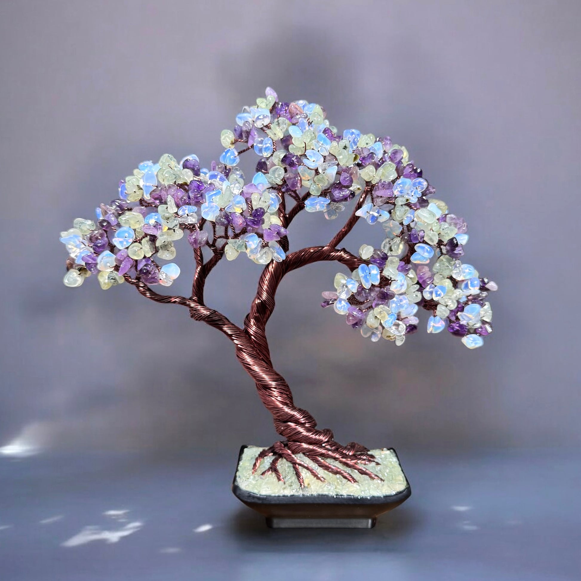 Amethyst, Prehnite & Opal Bonsai Crystal Tree