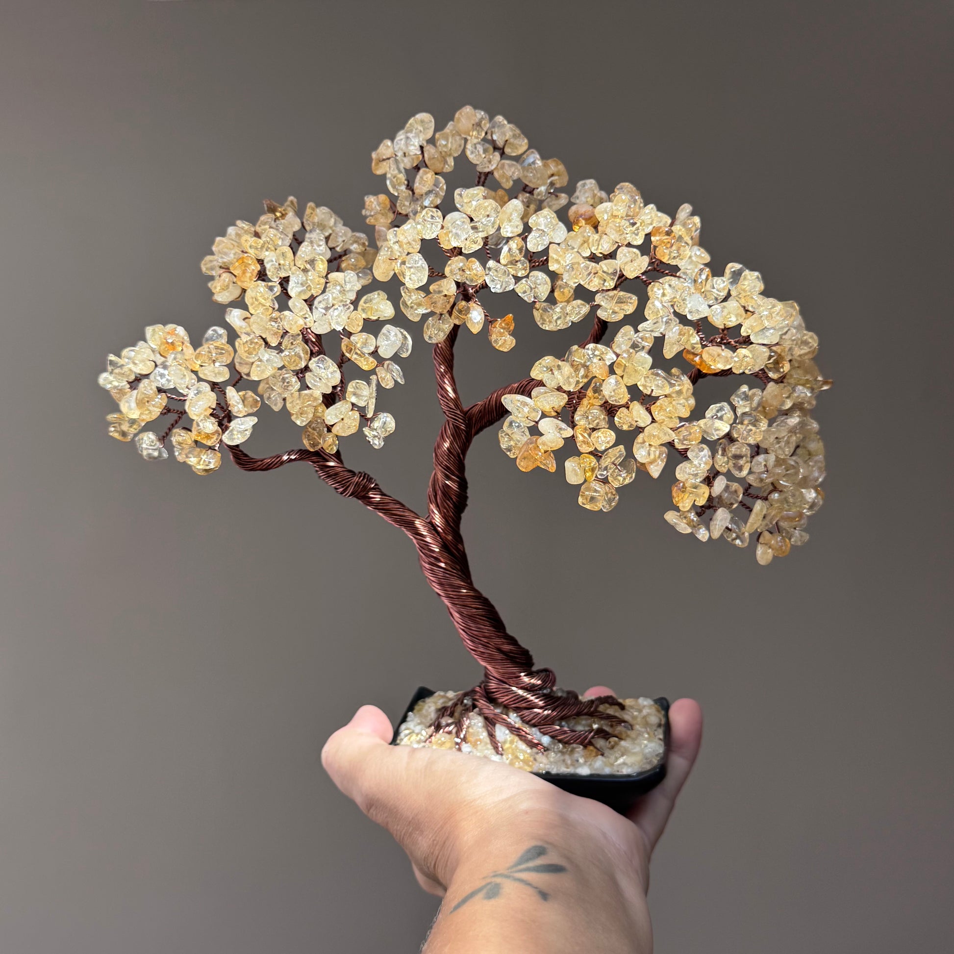 Each wire-wrapped branch shines with golden-yellow citrine stones that radiate warmth and positivity, helping to clear negativity and attract success. This beautiful tree inspires optimism and determination, making it a perfect addition to your home, office, or creative space.