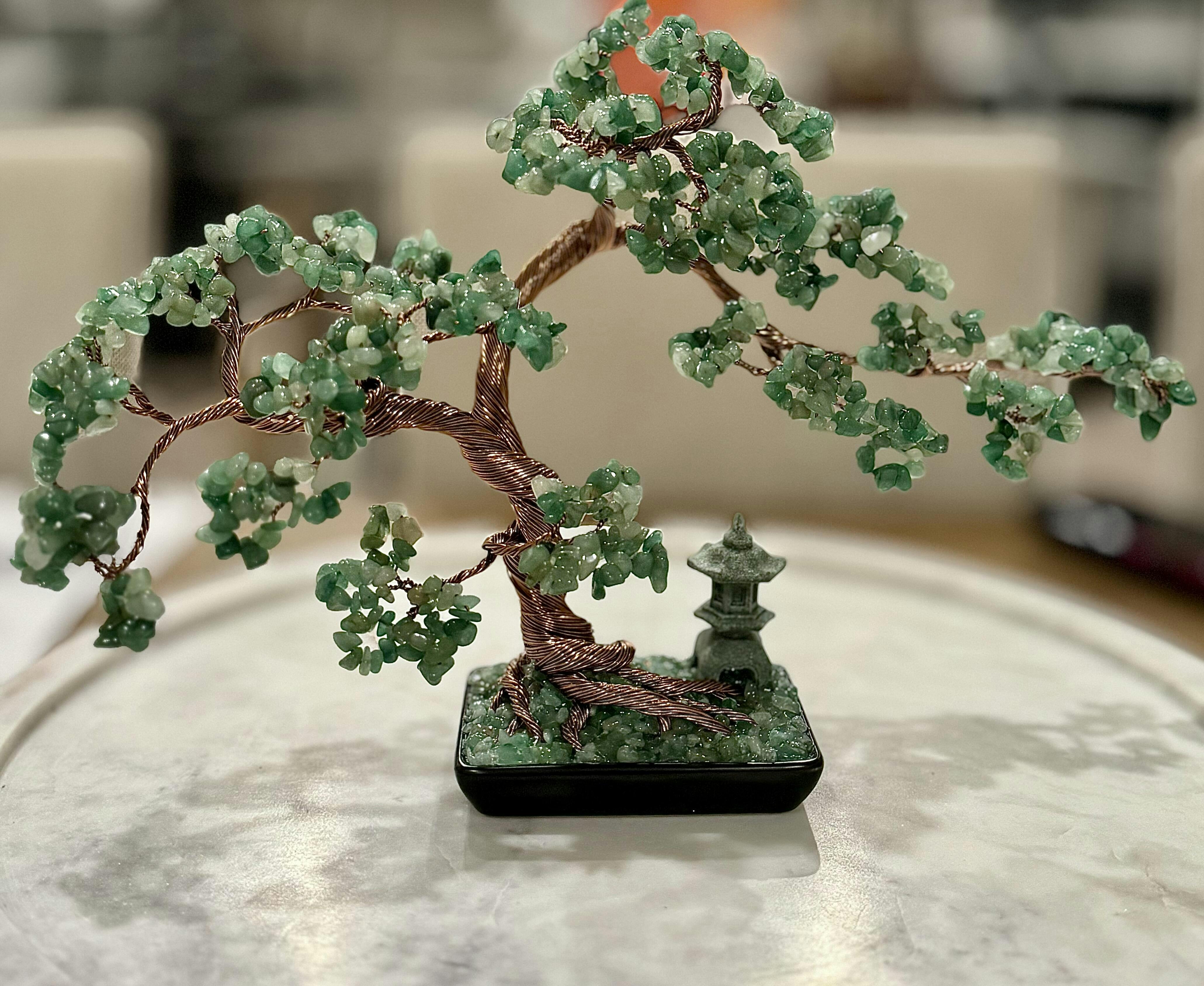 Large Green Aventurine Bonsai Crystal Tree with Pagoda